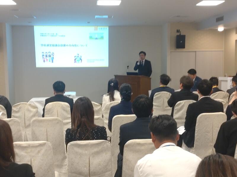 まず、宇都宮市教育委員会事務局 学校教育課 指導グループ 副主幹 髙橋様から「学校運営協議会設置の方向性について」をご説明いただきました。宇都宮市では「魅力ある学校づくり地域協議会(魅力協)」(宇都宮版CS)を生かし、モデル校4校による学校運営協議会の試行的導入事業を行っています。今年度の成果として、委員の当事者意識が高まり会議での話し合いの活性化がみられているということでした。今後の方向性とは本市にCSを導入する前提で、今後も試行的事業を継続し円滑なCS導入に向けた課題整理、関係例規の整備などの検討を行っていく予定だということでした。