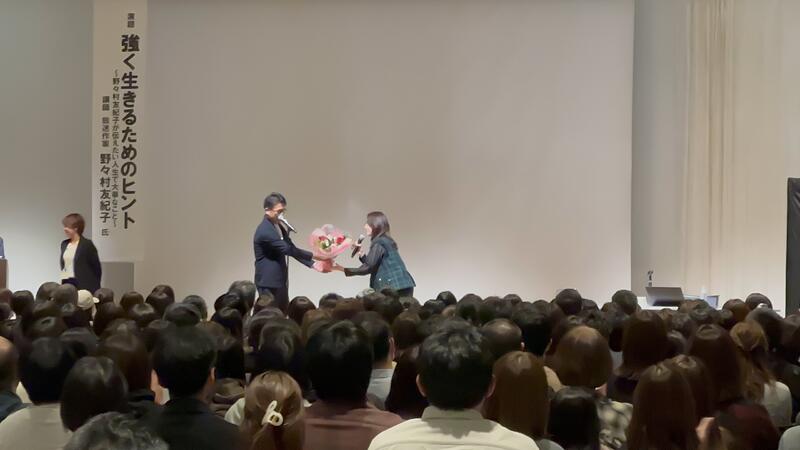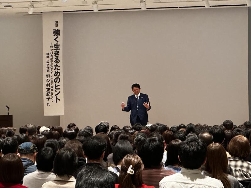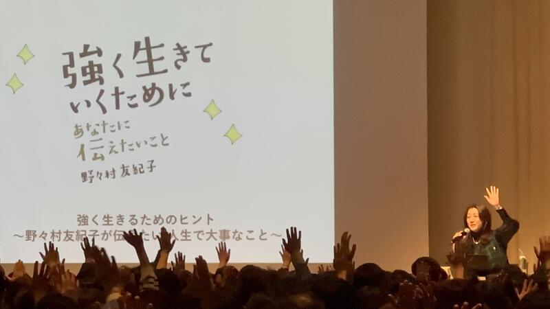 講師は、野々村友紀子 氏をお招きして「 強く生きるためのヒント」で、サブタイトル~野々村友紀子が伝えたい人生で大切なこと~をいくつかのキーワードを含んだ短文にして私たちに示していただきました。